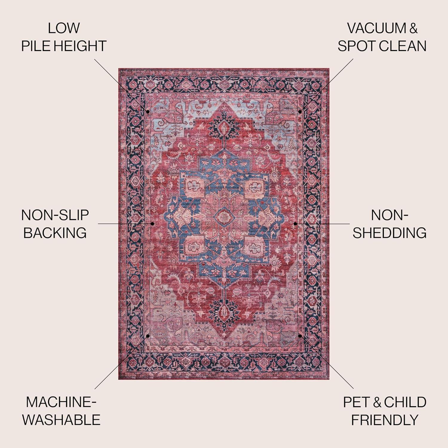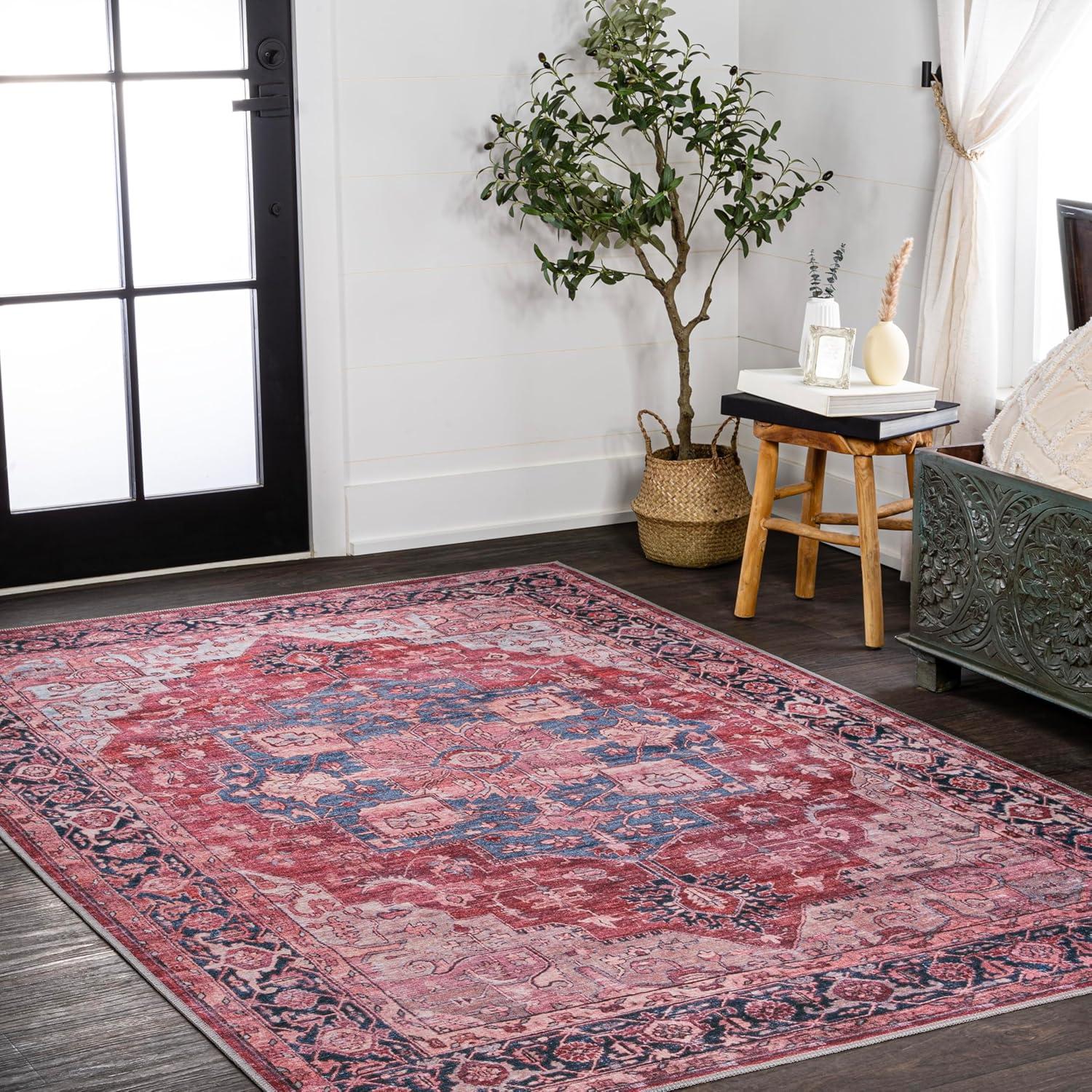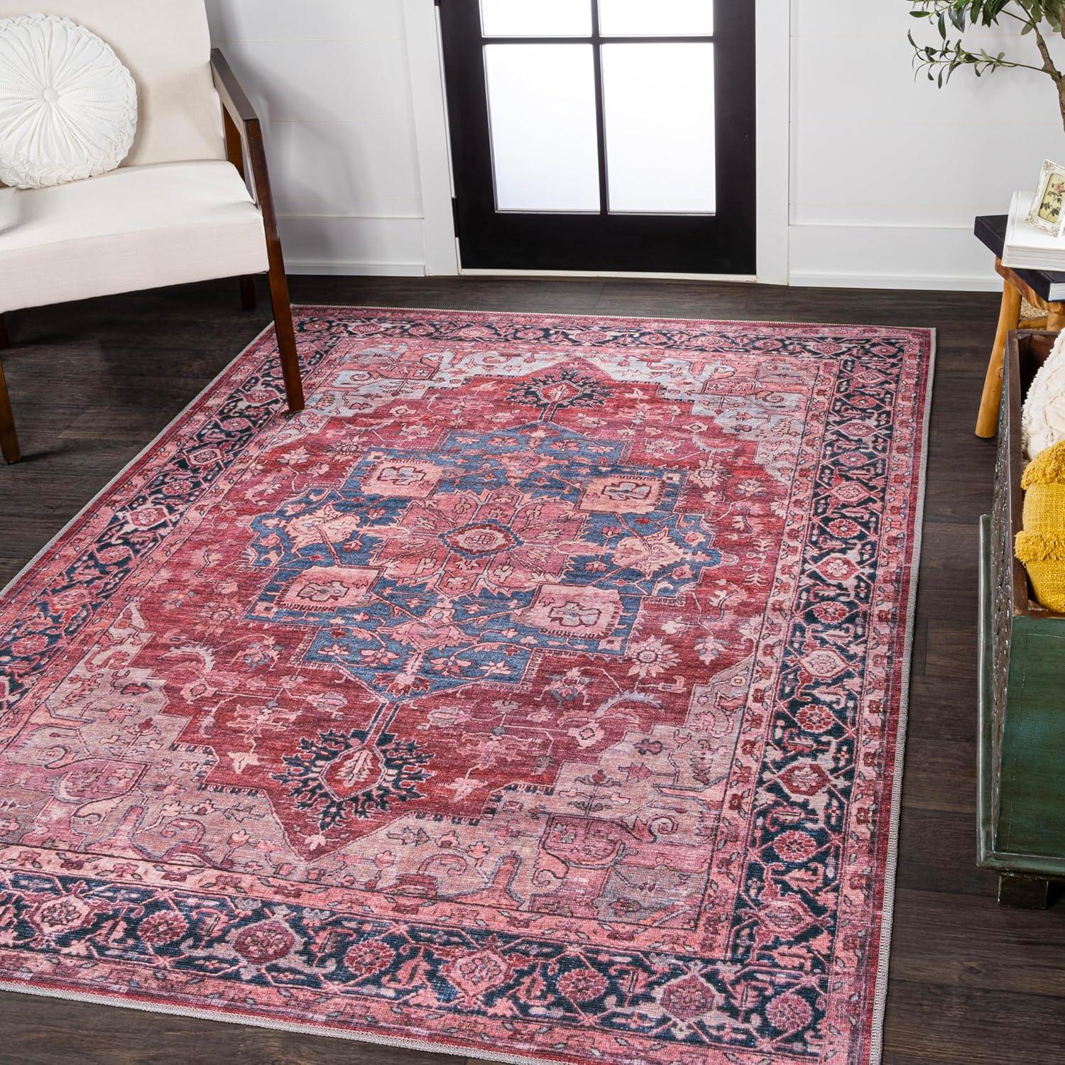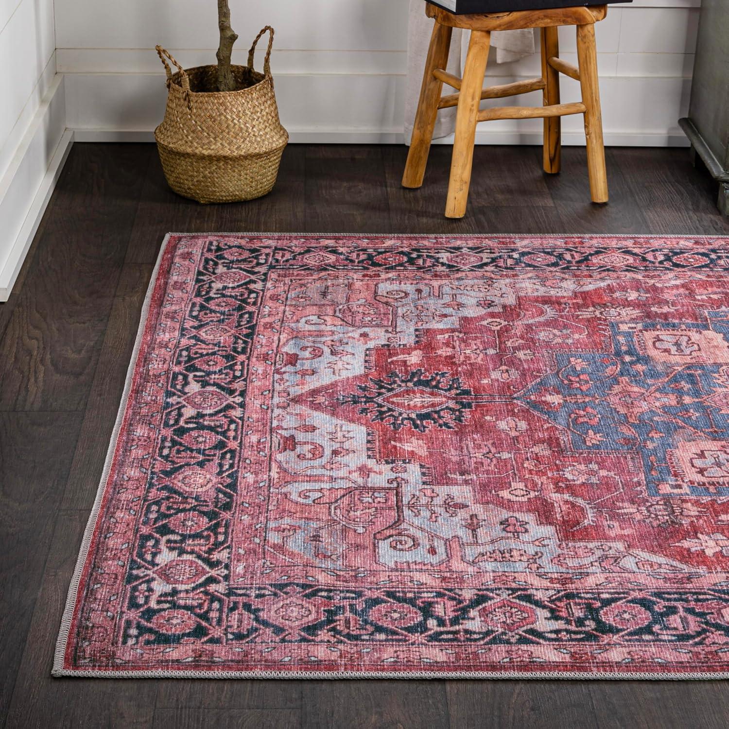 JONATHAN Y Machine Washable Red/Black/Blue Indoor Area Rug 3X5 ft, Maris Ornate Medallion for Living Room, Bedroom, Kitchen, Office, Easy-Cleaning, High Traffic, Pet-Friendly, Non-Shedding WSH109F-3