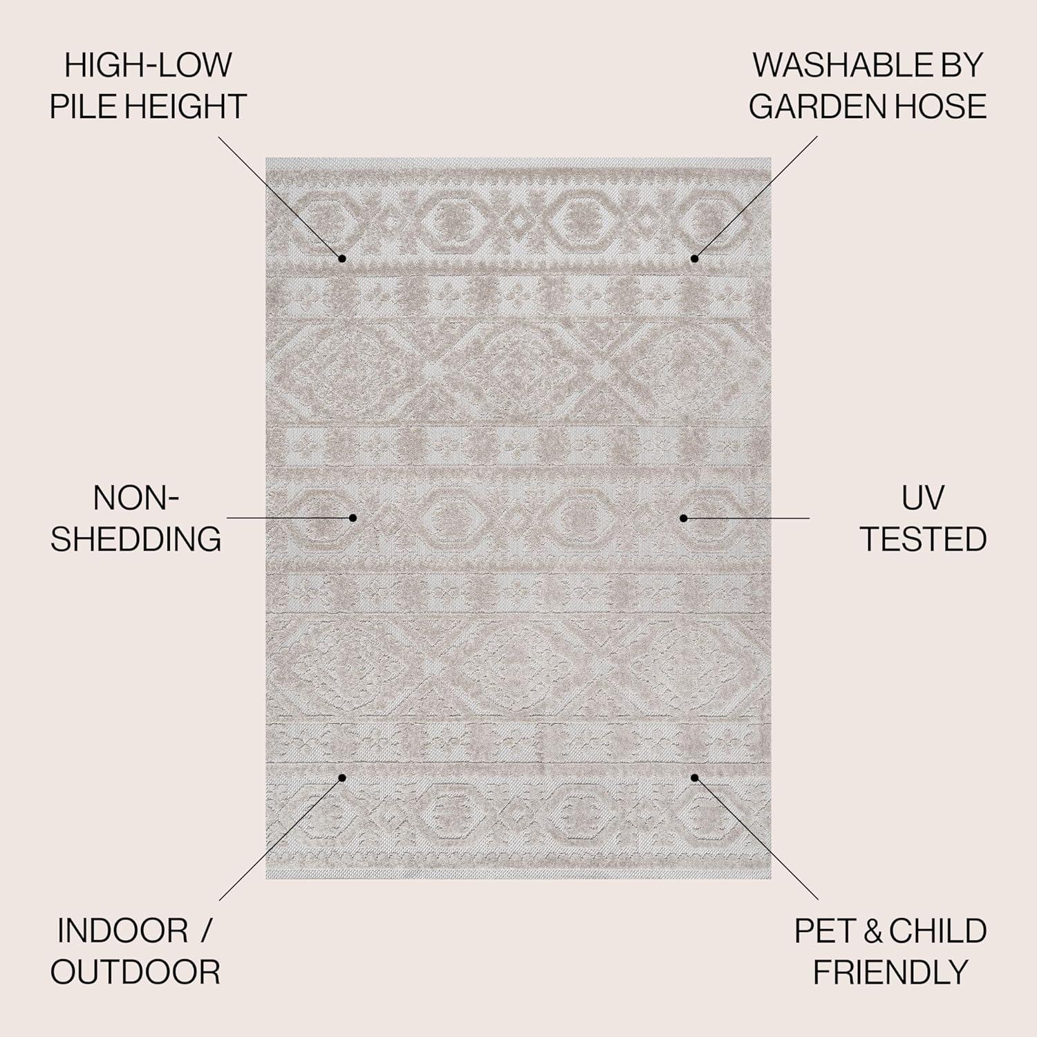 JONATHAN Y Mediterranean Tile Indoor Outdoor Area Rug 8X10 Beige, Citta High-Low Pile for Backyard, Patio, Porch, Easy-Cleaning, High Traffic, Pet-Friendly, Non-Shedding (SBH102A-8)(Beige)