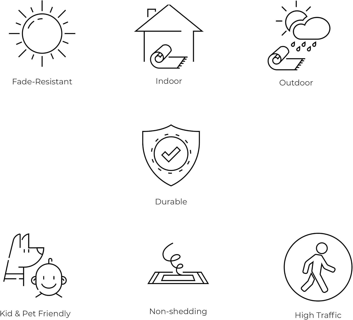 STAIN-RESISTANT AND PET-FRIENDLY: This rug is made from synthetic fibers that resist UV fading; The pet-friendly low-pile construction won’t accumulate dirt, and spills clean up easily; It’s been machine-woven so the rug fibers will stay put