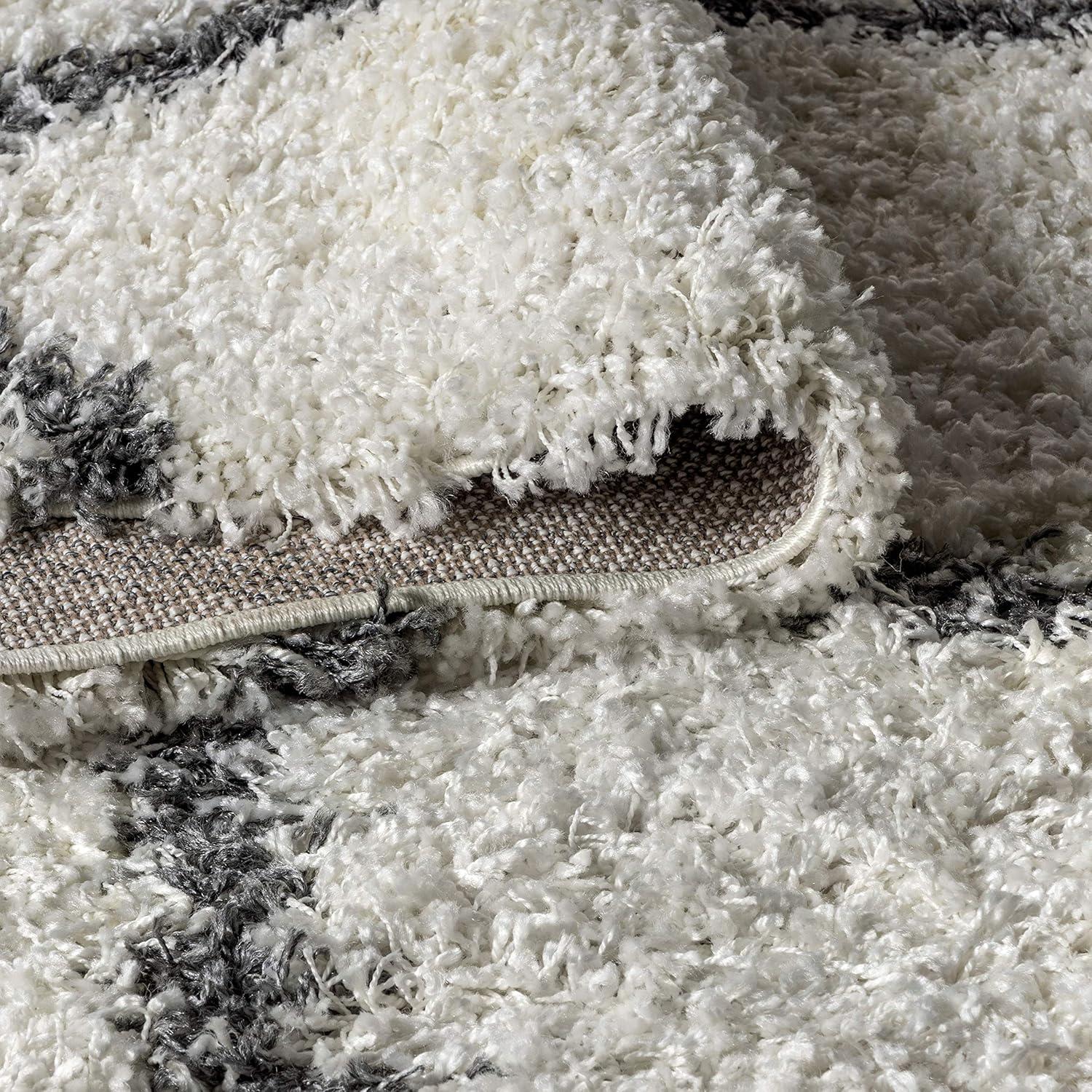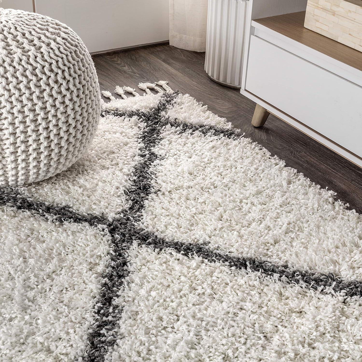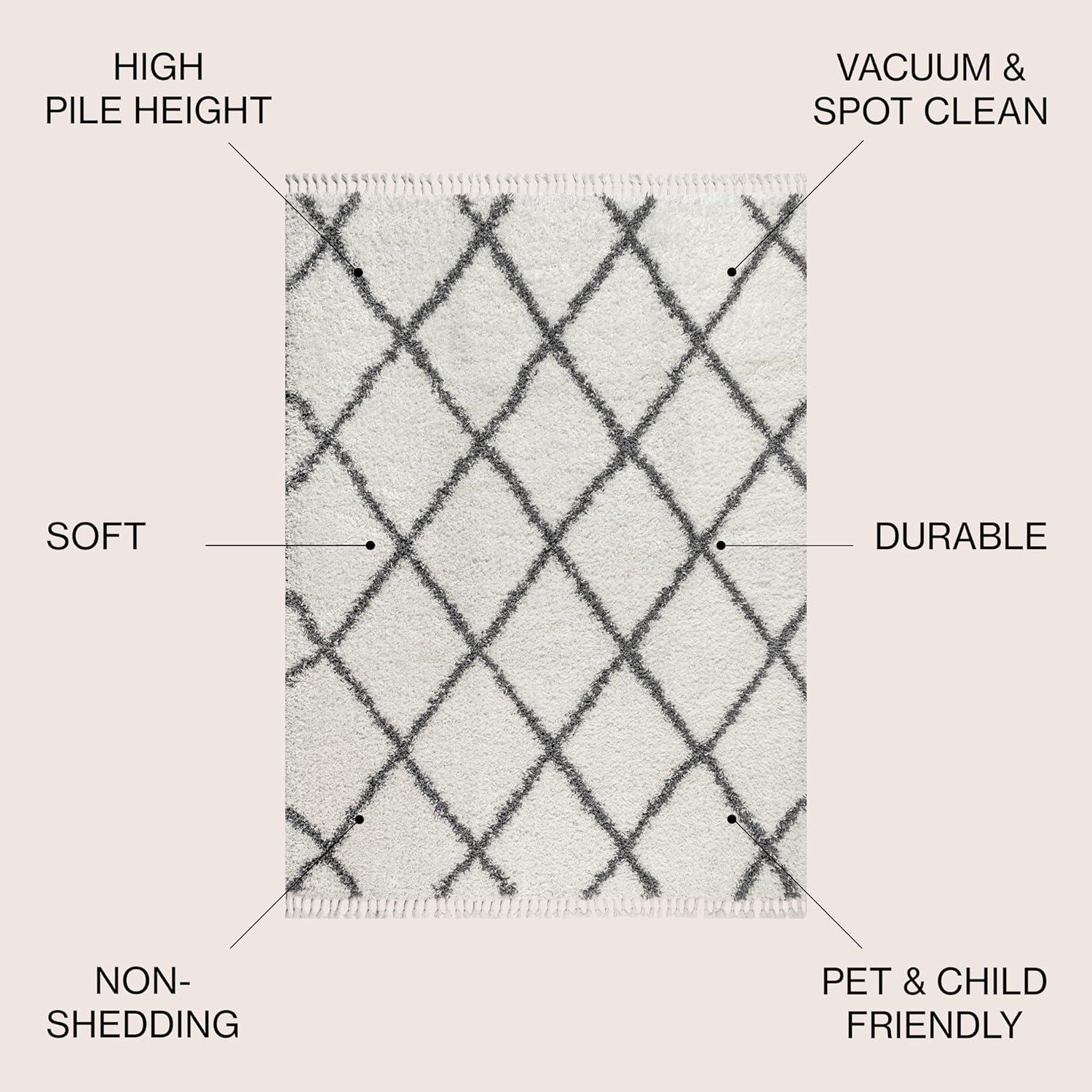 JONATHAN Y Mercer Shag Plush Tassel Gray/Cream Indoor Area Rug, 3×5, Moroccan Geometric Trellis, Transitional, Easy-Cleaning for Living Room, Bedroom, Kitchen, Non-Shedding (MCR104C-3)(Cream/Grey)