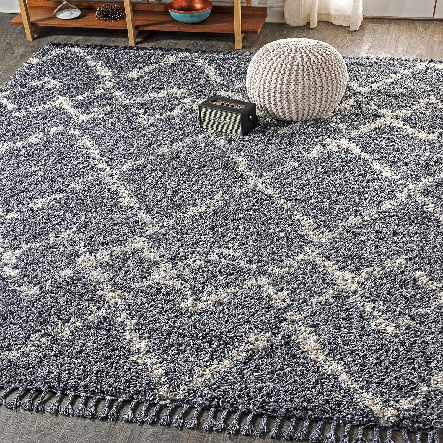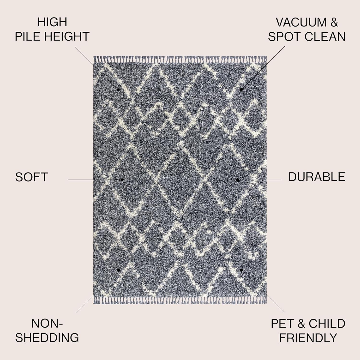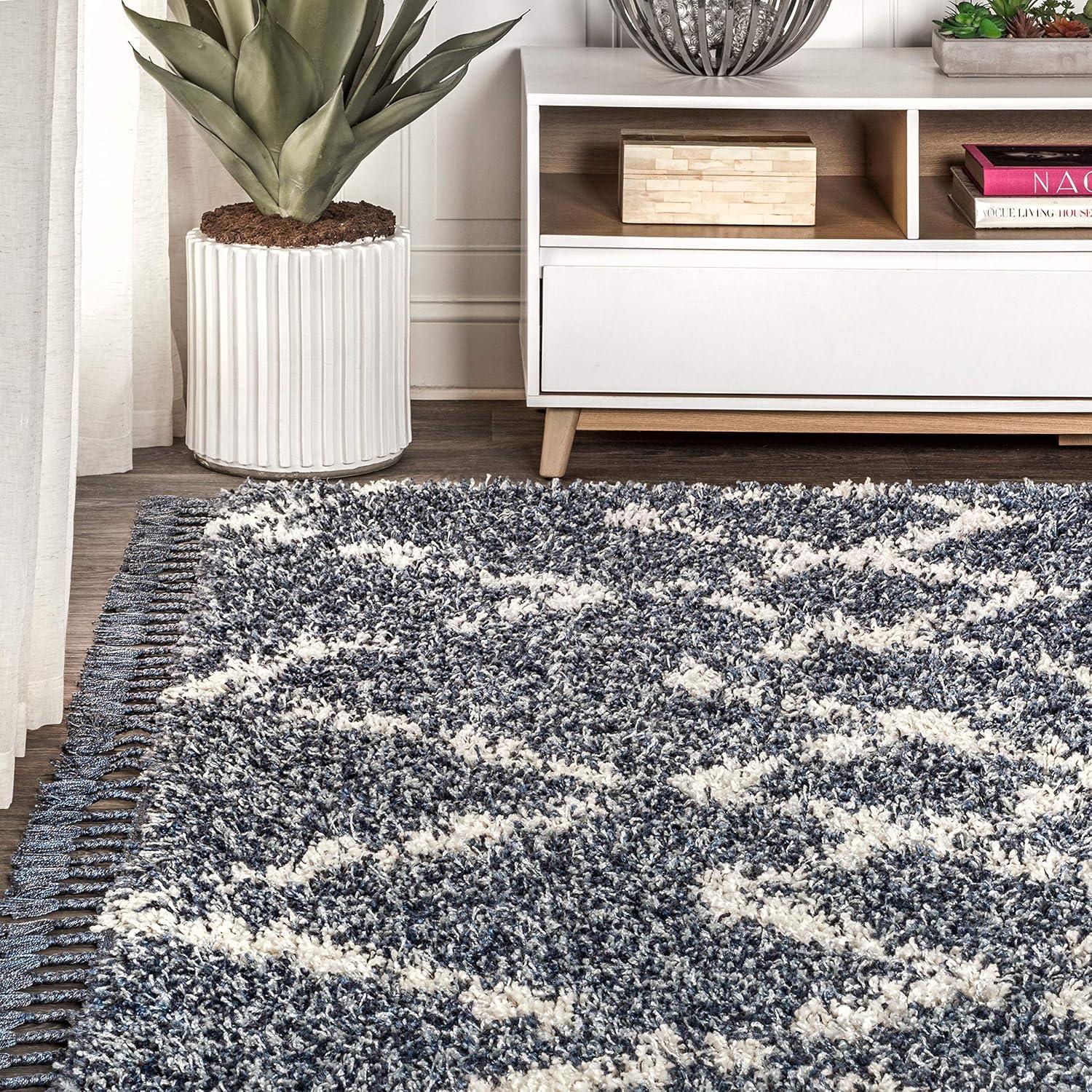 JONATHAN Y Mercer Shag Plush Tassel Ivory/Gray Indoor Area Rug, 8×10, Moroccan Geometric Trellis, Contemporary, Easy-Cleaning for Living Room, Bedroom, Kitchen, Pet Friendly, Non-Shedding (MCR102B-8)(Blue/Cream)