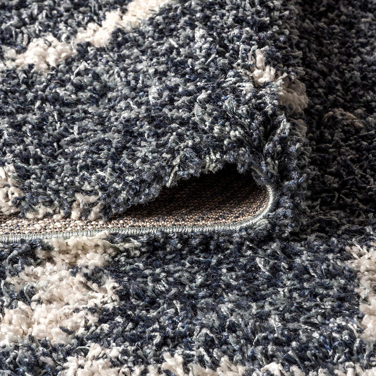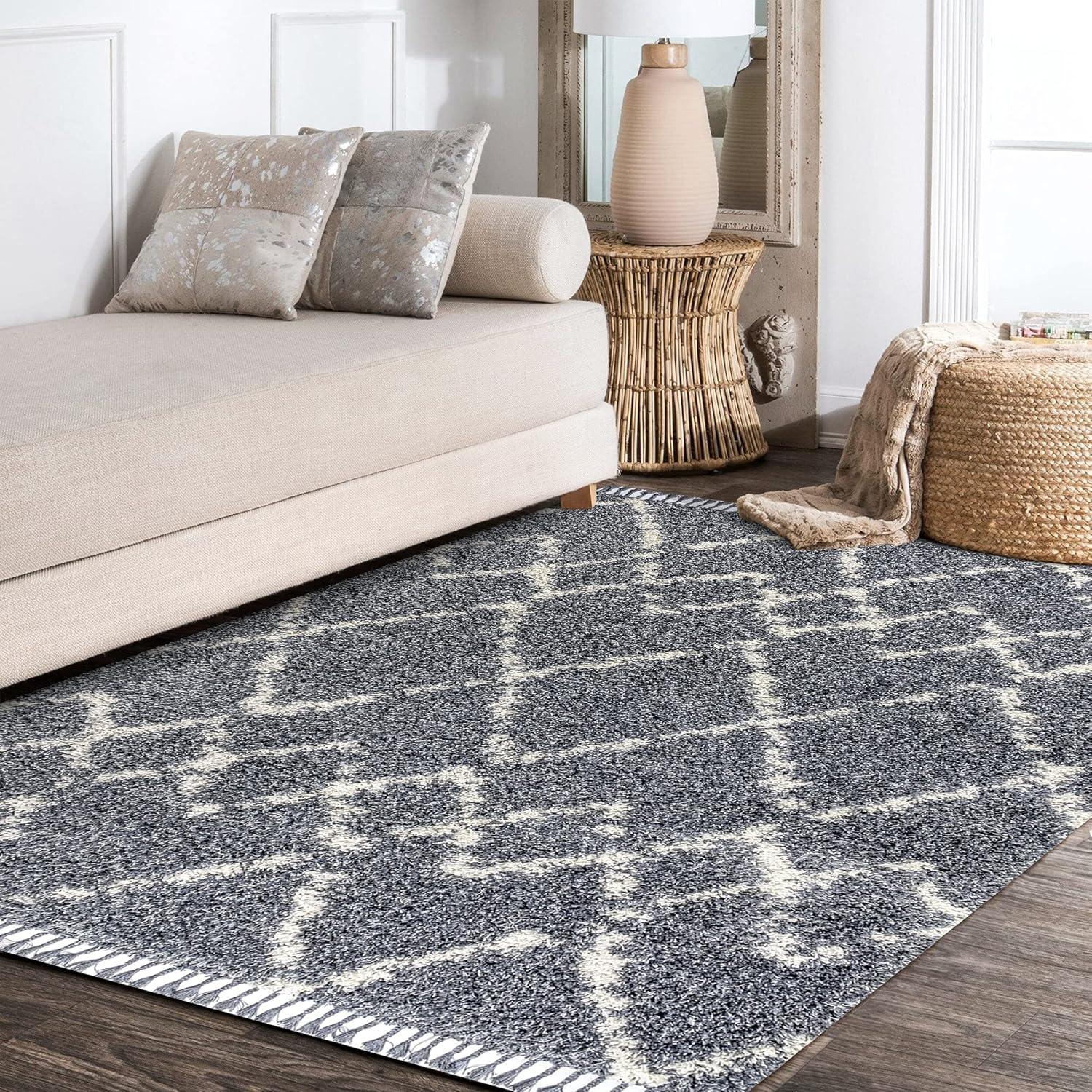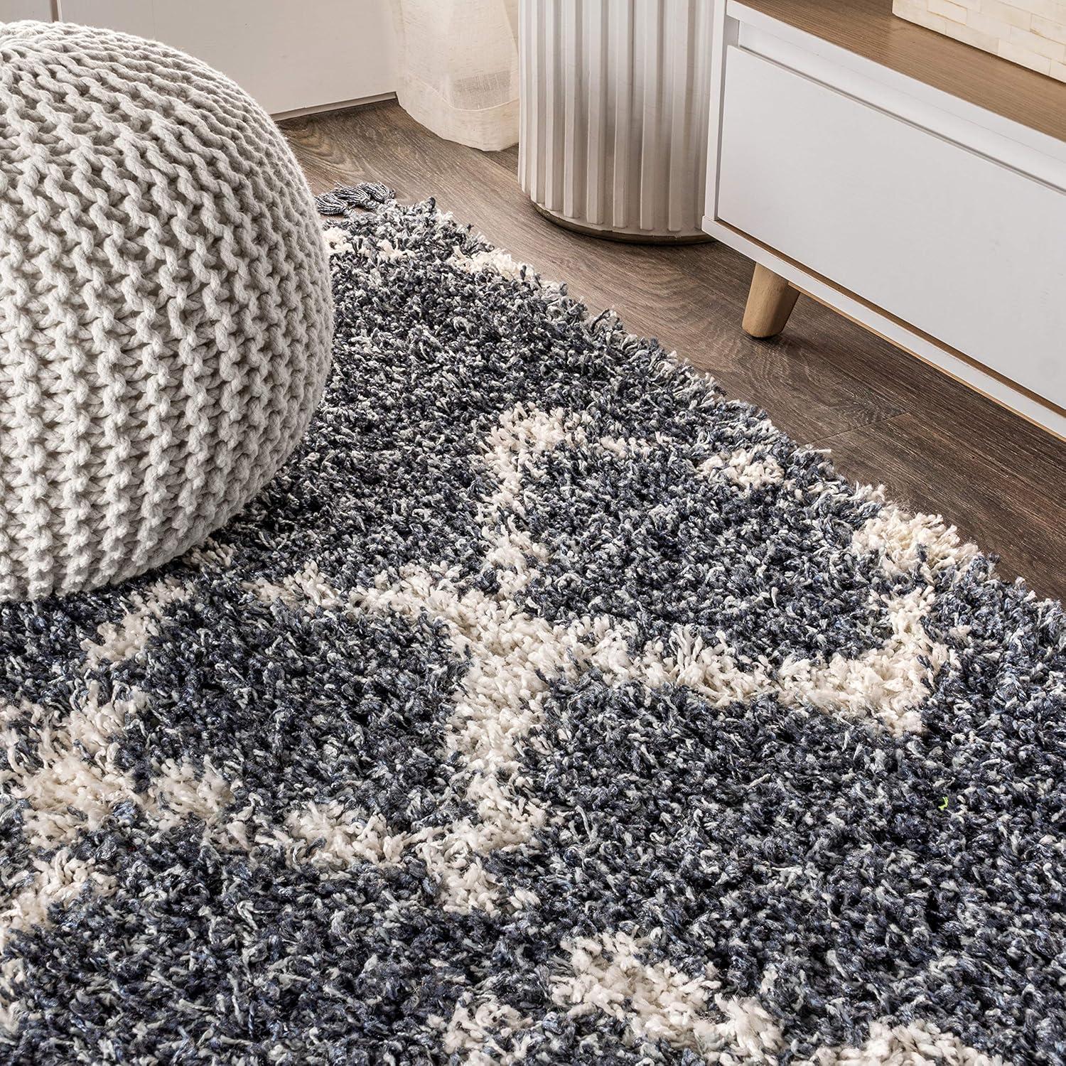 JONATHAN Y Mercer Shag Plush Tassel Ivory/Gray Indoor Area Rug, 8×10, Moroccan Geometric Trellis, Contemporary, Easy-Cleaning for Living Room, Bedroom, Kitchen, Pet Friendly, Non-Shedding (MCR102B-8)(Blue/Cream)