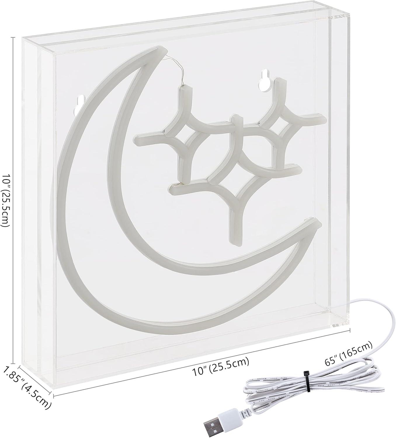 JONATHAN Y NEN1034A Starry Crescent 10″ Square Contemporary Glam Acrylic Box USB Operated LED Neon Light, White