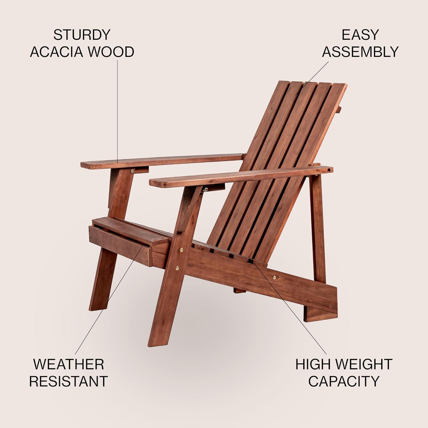 This modern Adirondack chair adds a mid-century touch to your porch, deck or patio. Comfortable slat-back chair has a vintage-style square silhouette. Handcrafted from durable acacia wood, with sturdy construction that's built to last.