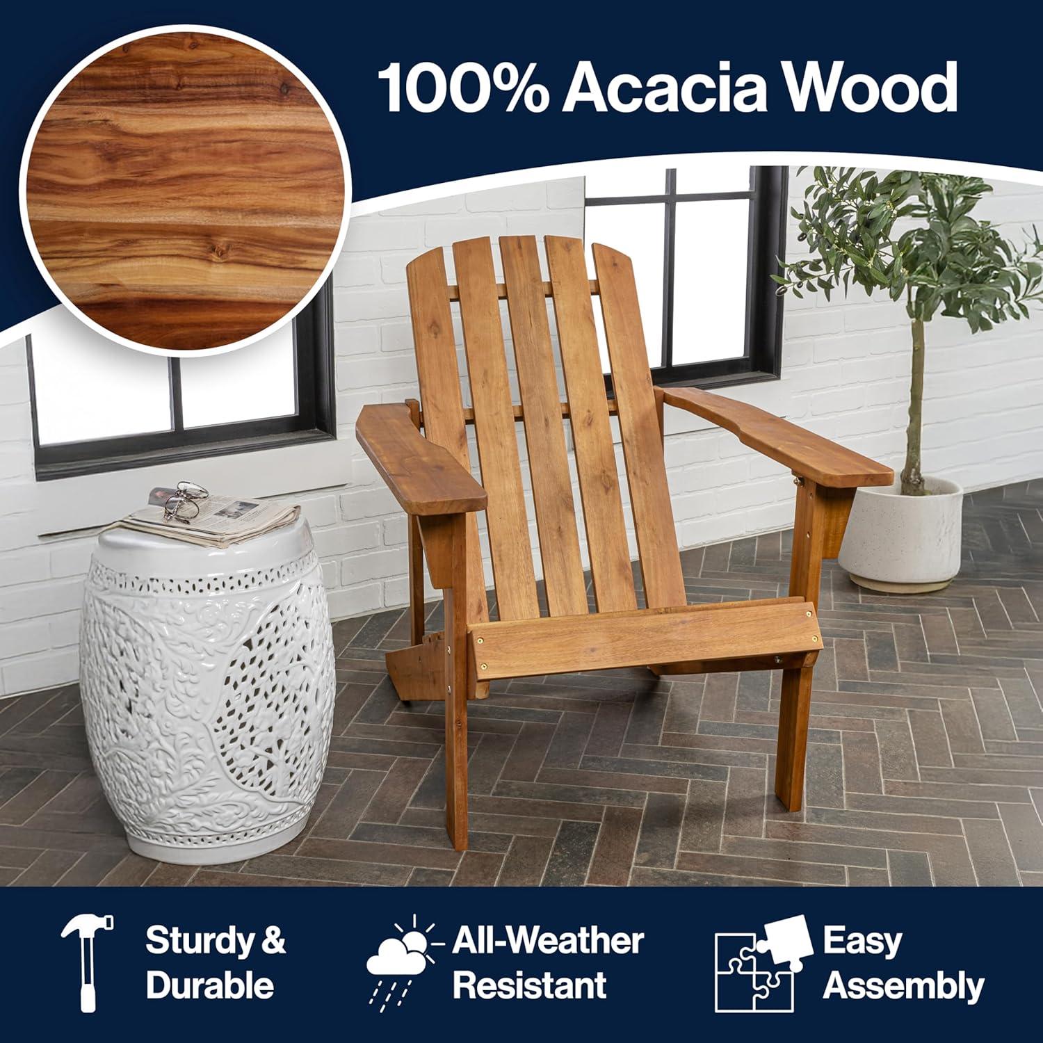 CLASSIC OUTDOOR FURNITURE: Our Adirondack furniture is a stylish and durable addition to your porch, deck or patio. Available in four colors, comfortable slat-back designs handcrafted from durable acacia wood, with sturdy construction that's built to last