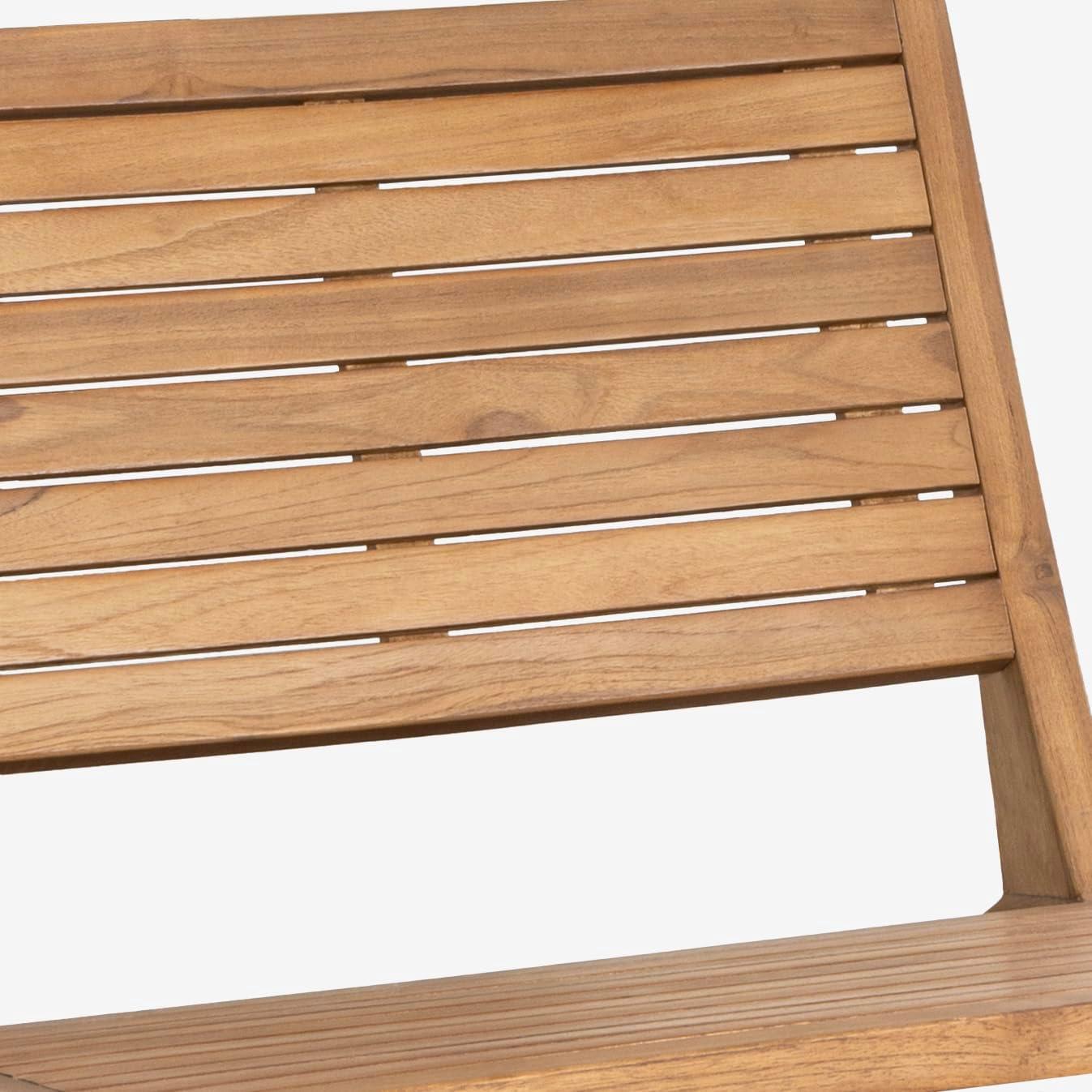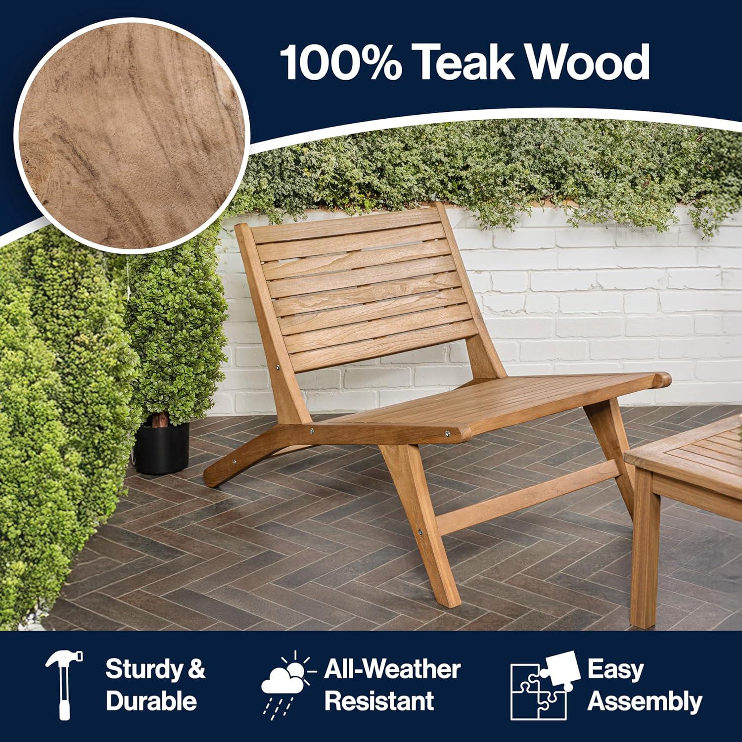 Chair frame and slats are crafted from solid teak wood in a natural light wood color
