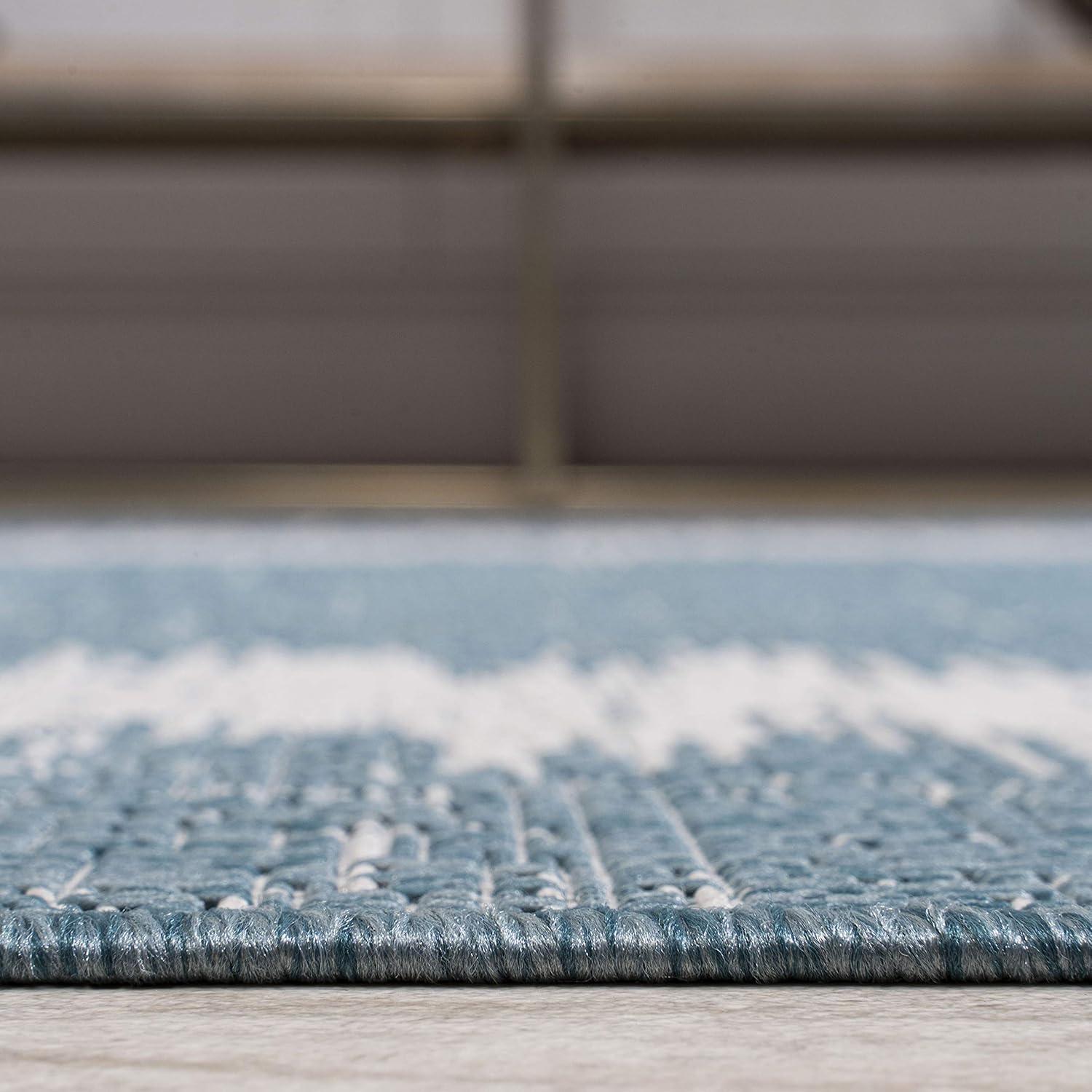 JONATHAN Y Scandi Border Indoor Outdoor Area Rug 3X5 Aqua/Ivory, Minimalist for Backyard, Patio, Porch, Easy-Cleaning, High Traffic, Pet-Friendly, Non-Shedding (SMB118A-3)(2’2″ x 8′ (Runner))