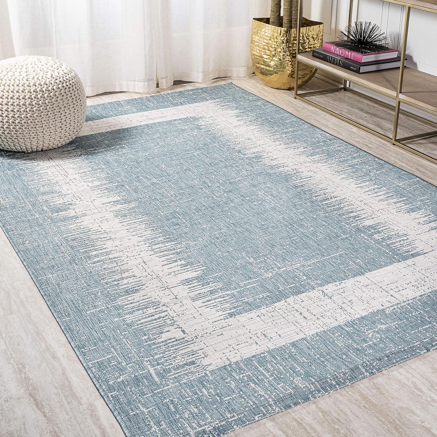 JONATHAN Y Scandi Border Indoor Outdoor Area Rug 3X5 Aqua/Ivory, Minimalist for Backyard, Patio, Porch, Easy-Cleaning, High Traffic, Pet-Friendly, Non-Shedding (SMB118A-3)(3’1″ x 5′ (Rectangular))