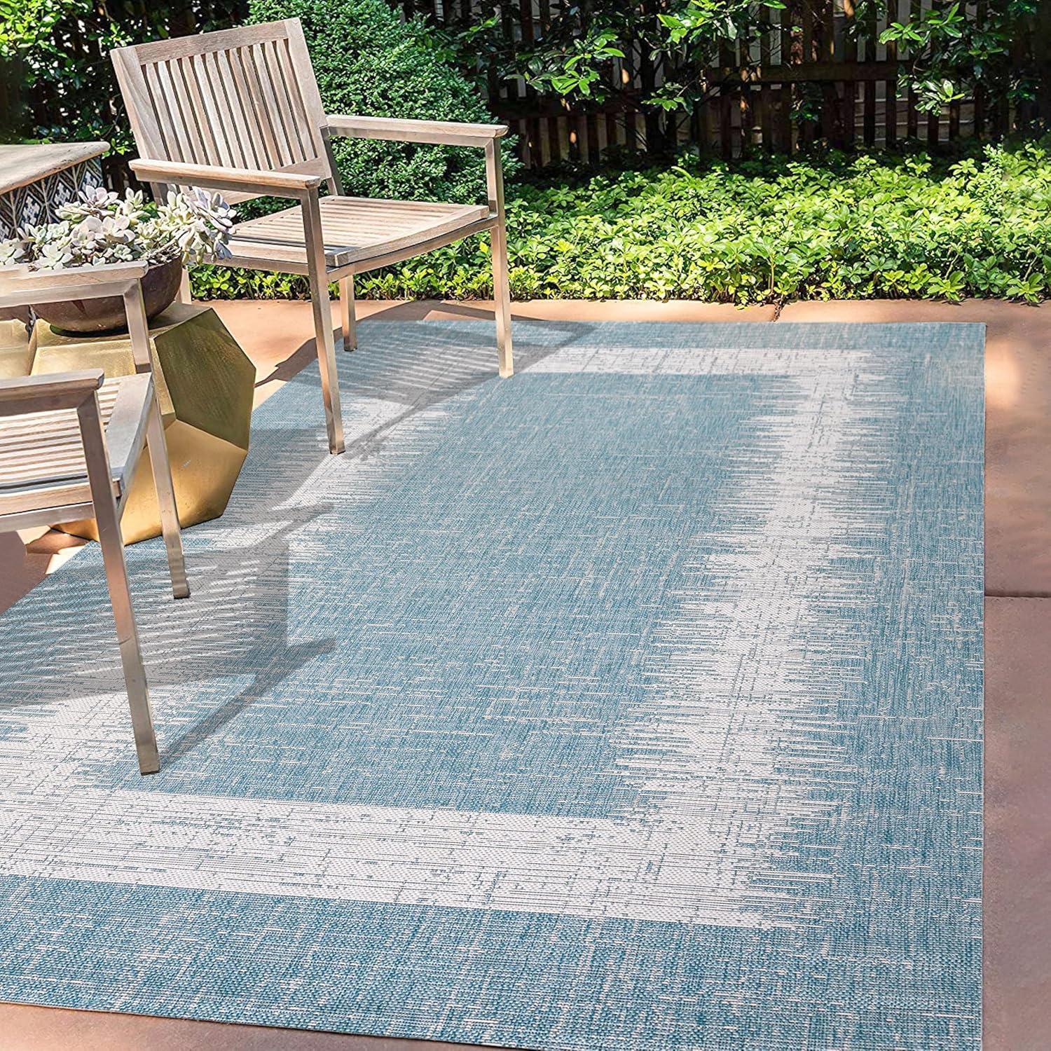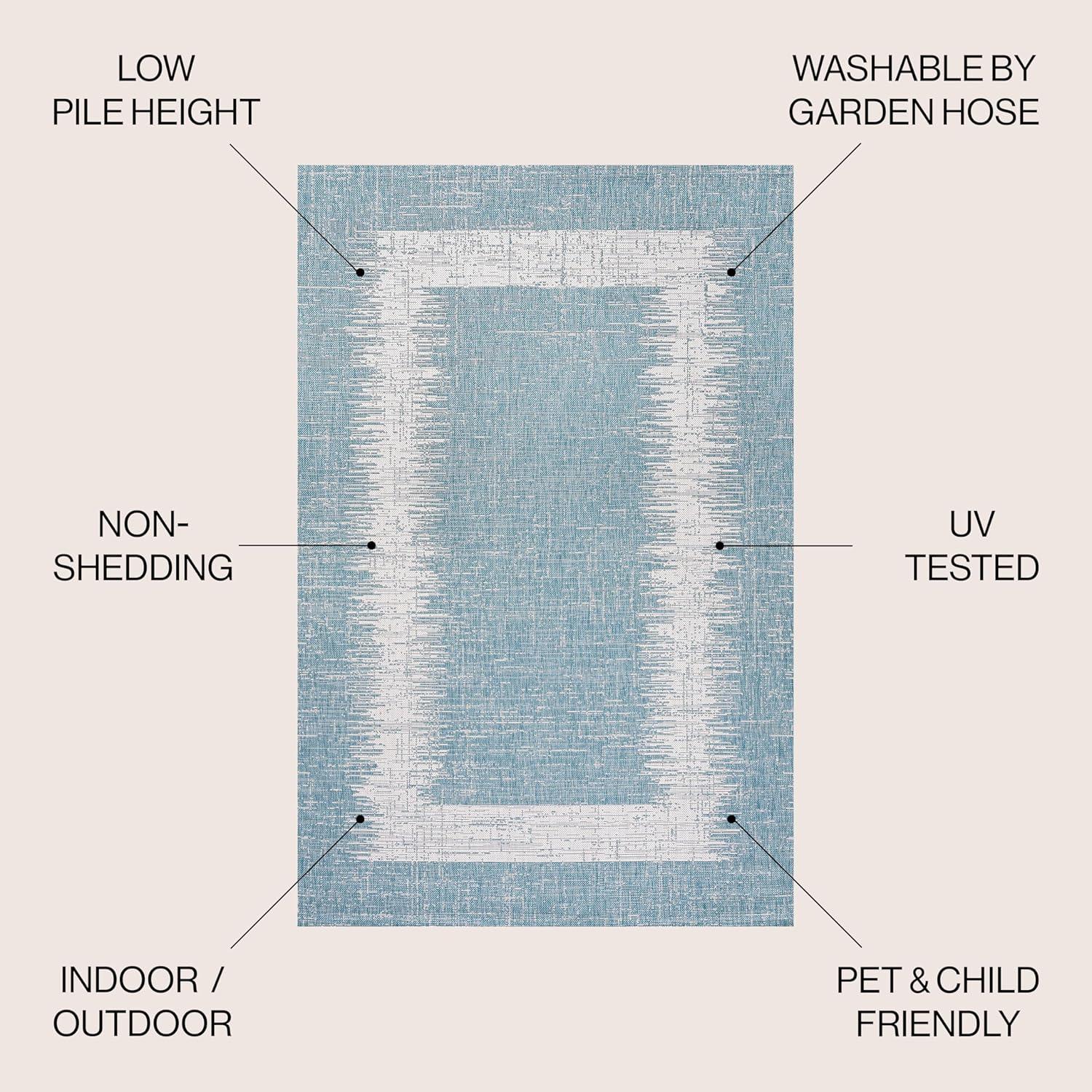 JONATHAN Y Scandi Border Indoor Outdoor Area Rug 3X5 Aqua/Ivory, Minimalist for Backyard, Patio, Porch, Easy-Cleaning, High Traffic, Pet-Friendly, Non-Shedding (SMB118A-3)(3’11” x 6′ (Rectangular))