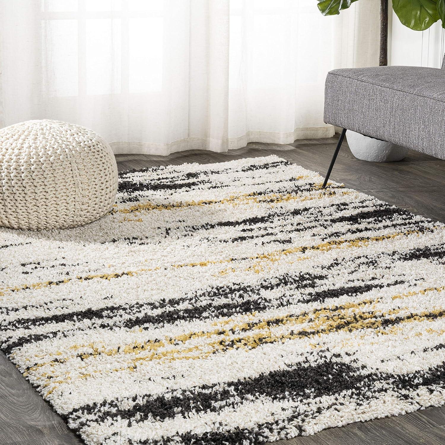 JONATHAN Y Strie’ Shag Beige/Black/Yellow Indoor Area Rug 3X5 ft, Nova Modern Bold for Living Room, Bedroom, Kitchen, Office, Easy-Cleaning, High Traffic, Pet-Friendly, Non-Shedding SHG102A-3(Beige/Black/Yellow)