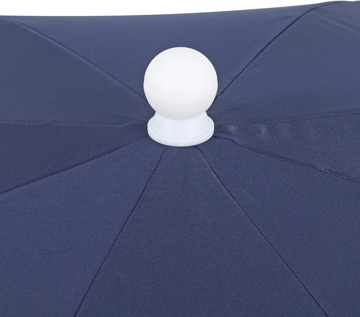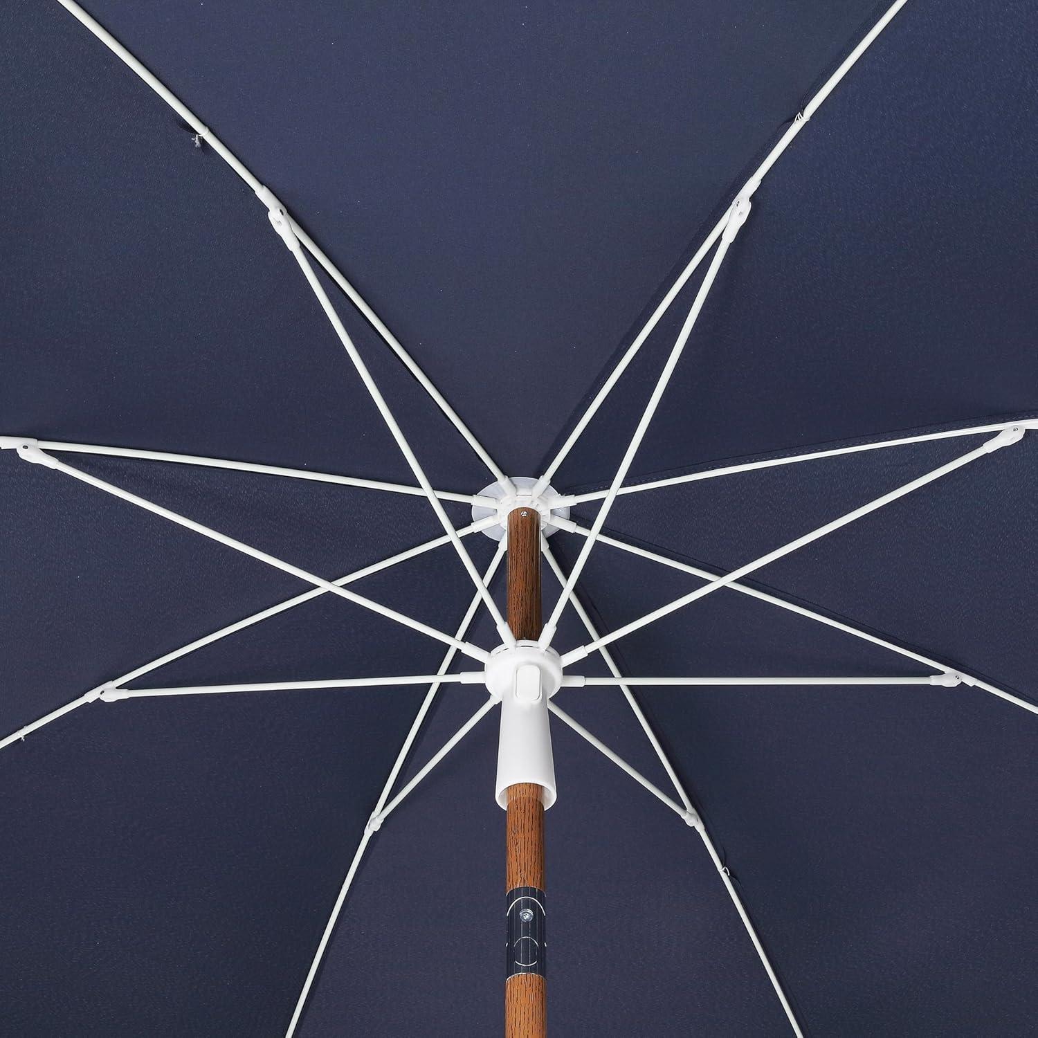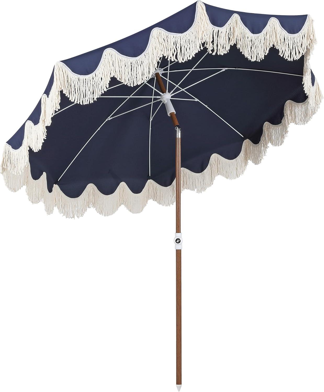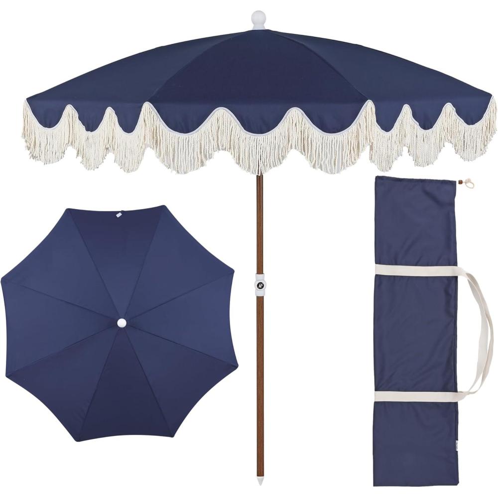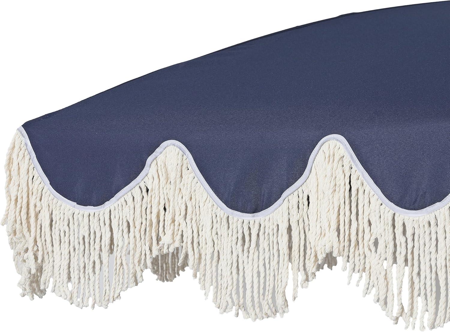 JONATHAN Y UMB1005E Mariner 6.5 ft. Classic Cottage Fringe Tassel Market Beach Umbrella with Push Button Tilt, Wind Vent and UV Protection, and Matching Carry Bag in Cream, White Pole(Navy/Cream)