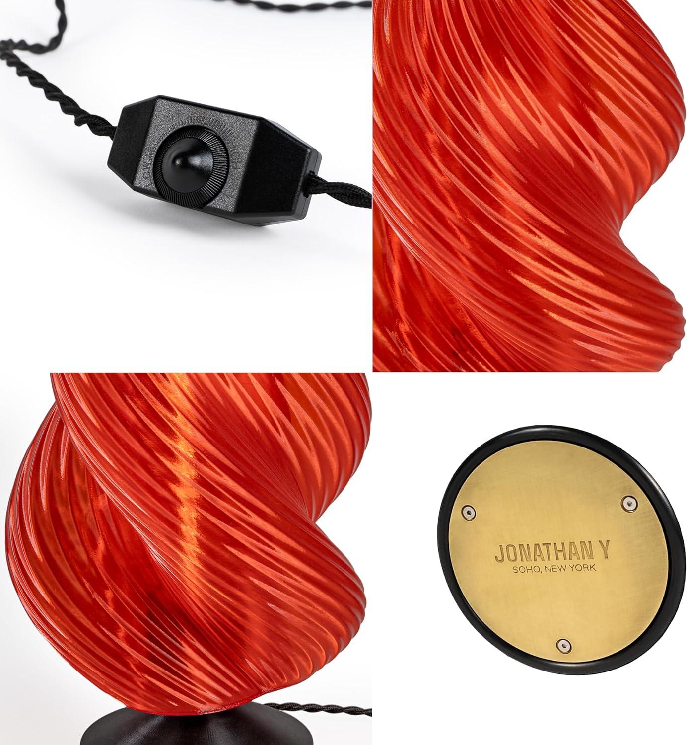 JONATHAN Y USA1009A Gema 13.5″ Mid-Century Coastal Plant-Based PLA 3D Printed Dimmable LED Table Lamp, Clear Red/Black, for Living Room, Dining Room, Bedroom(Clear Red/Black)