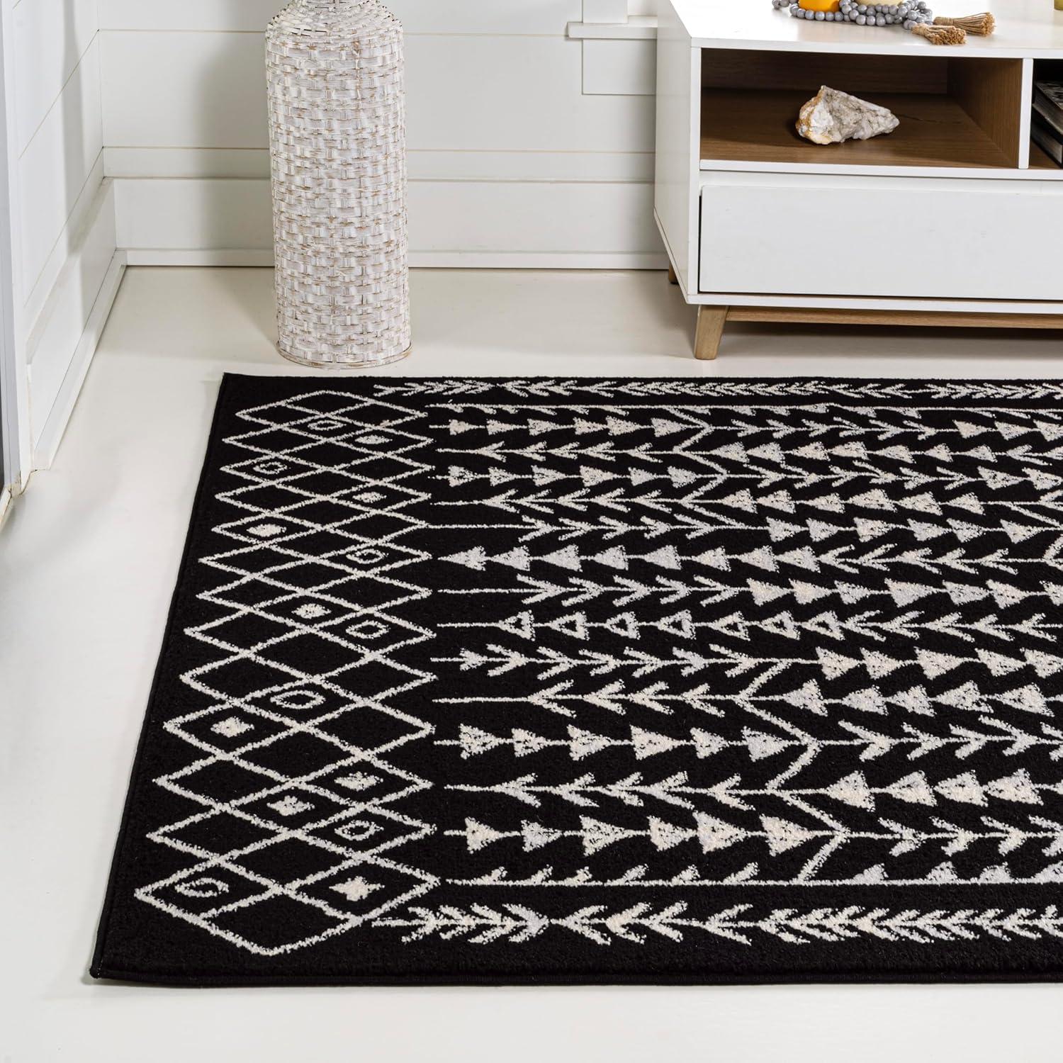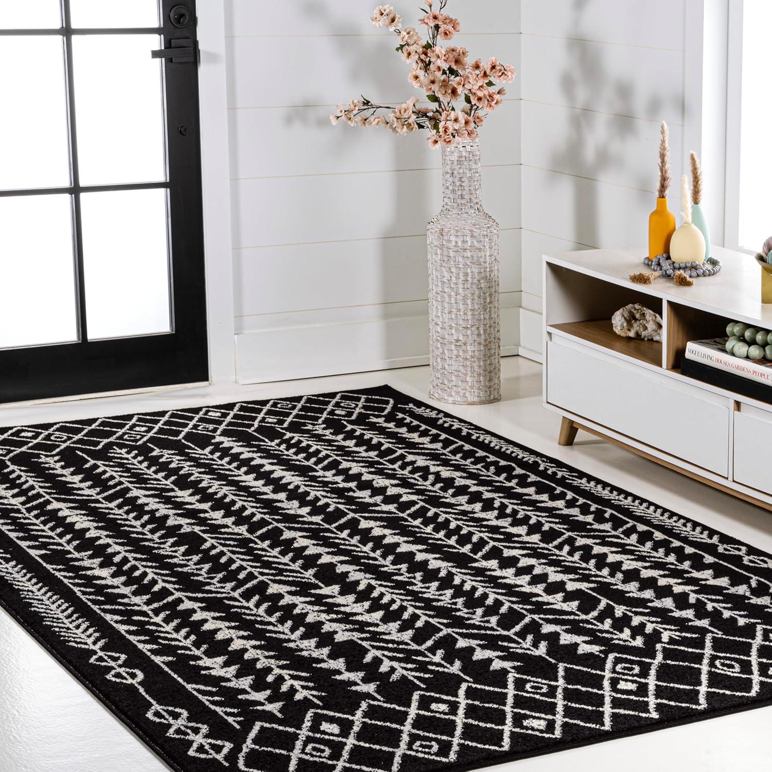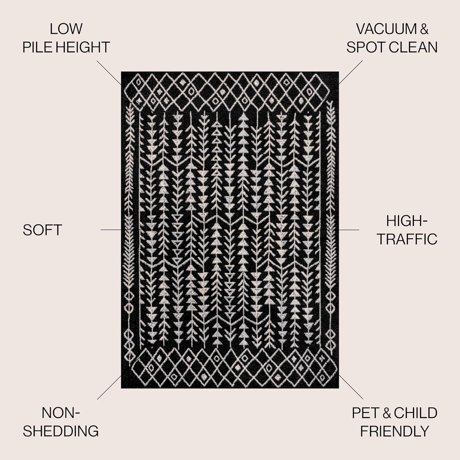 JONATHAN Y Ziri Moroccan Geometric Cream/Gray Indoor Area Rug, 8×10, Bohemian, Scandinavian, Easy-Cleaning for Living Room, Bedroom, Kitchen, Pet Friendly, Non-Shedding (MOH210A-8)(Black/Cream)